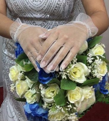Entre os acessórios que podem ser desenvolvidos estão véus e luvas, confeccionados sob medida e pensados para harmonizar com o estilo do vestido e da cerimônia.